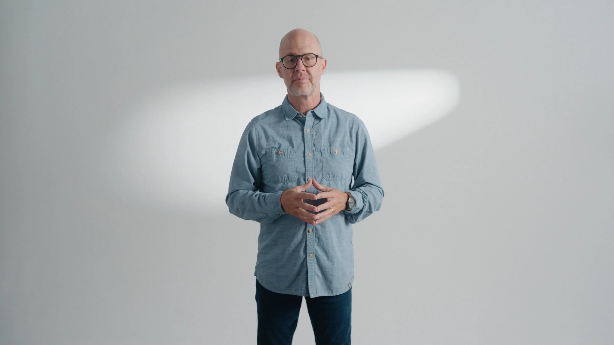 A man with a serious expression looking at the camera, with a hand reaching towards the lens. The background features a chandelier and photographic equipment.